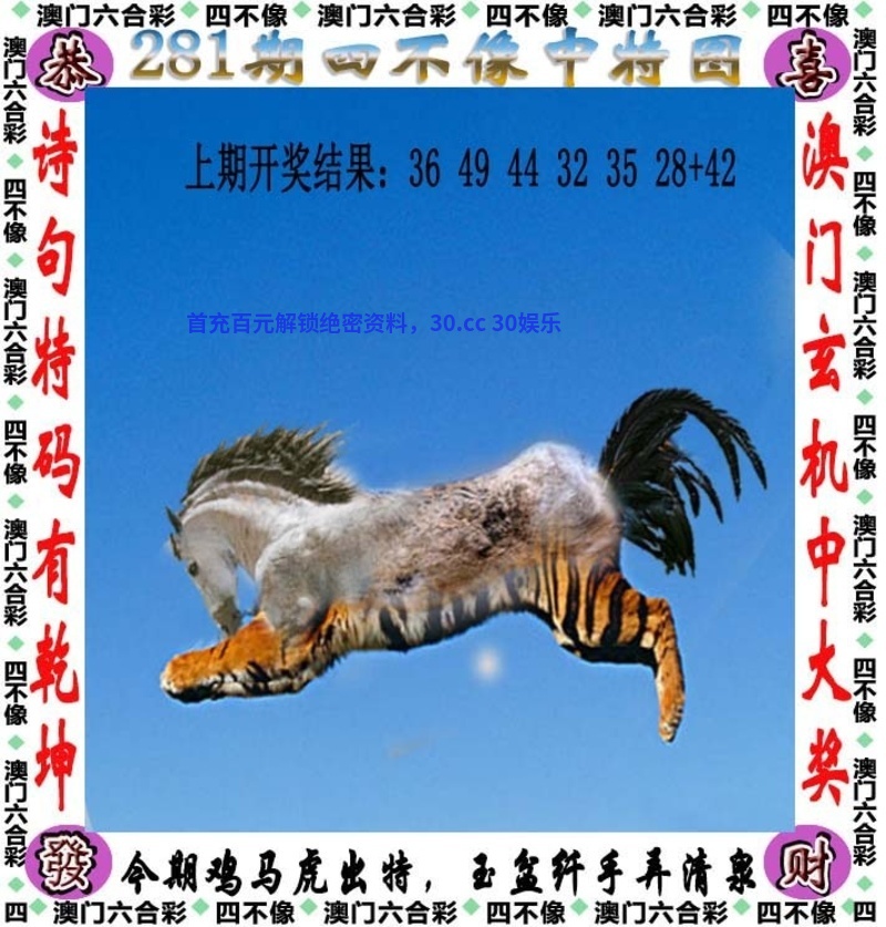 279期:六肖『虎牛鸡马蛇猴』开兔27